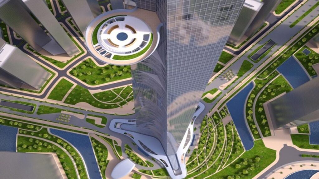 ارتفاع: بیش از ۱۰۰۰ متر (پس از تکمیل).